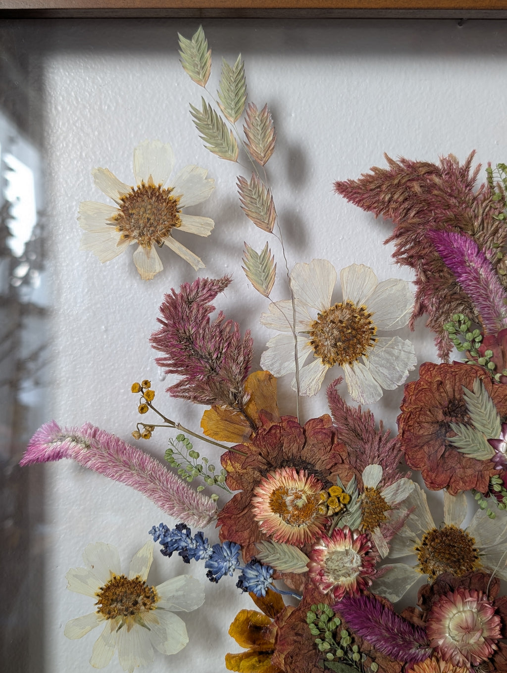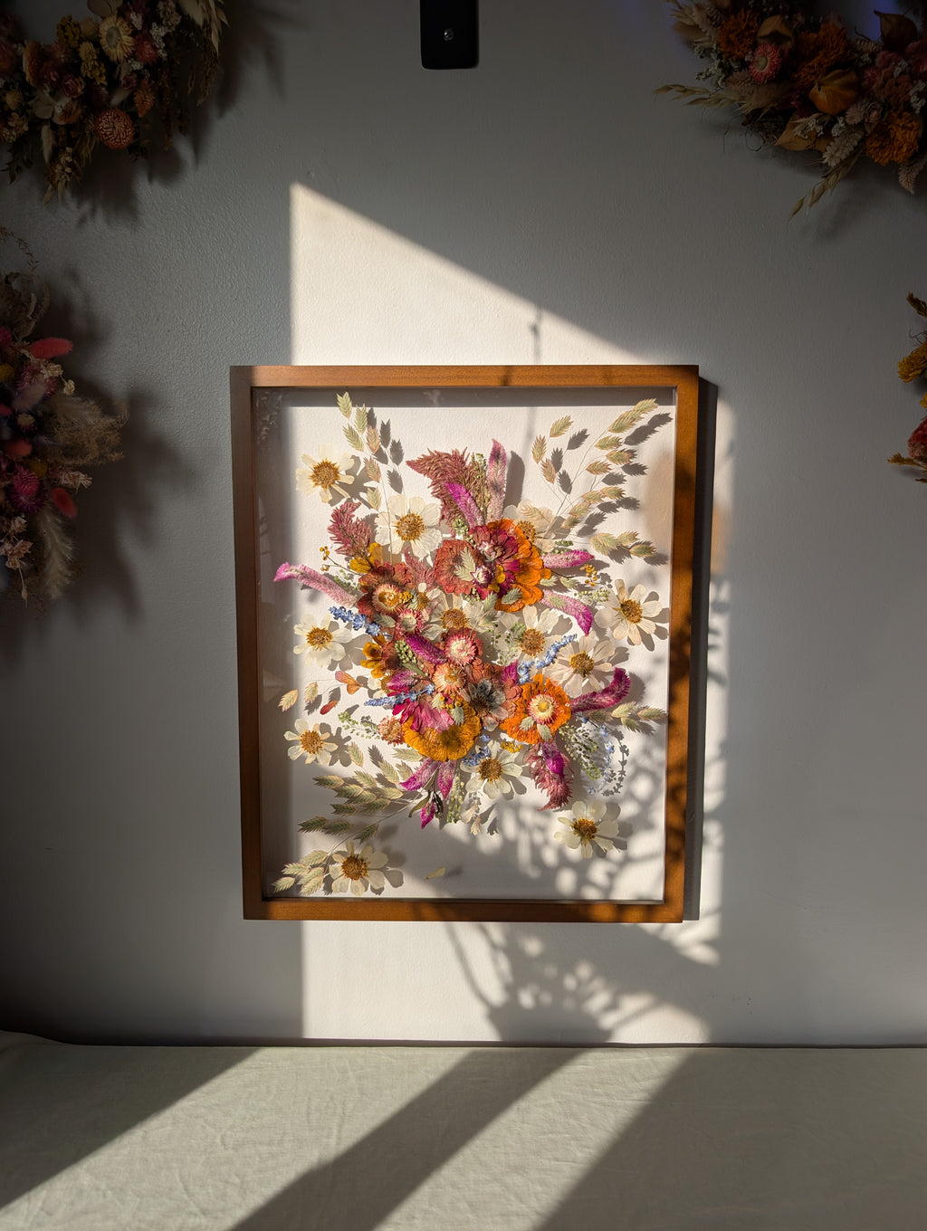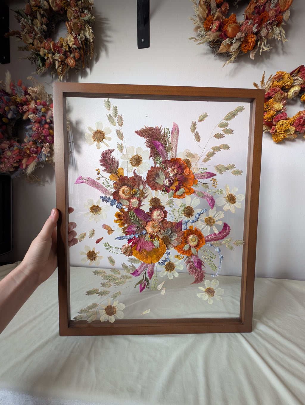 Please note: Frame costs will be added in later once we decide which frame you would like; once the flowers are pressed. An invoice will be sent via Shopify during the final stages of preservation.