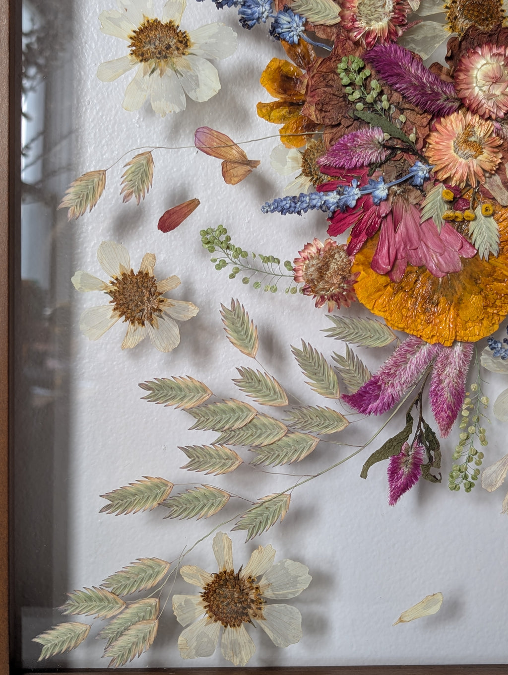 2) keep your completed preserved floral artwork out of direct sunlight and harsh temperatures.